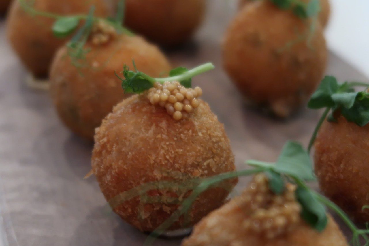 The first thing we get to taste is a beautiful little glass of soup made with Jerusalem artichokes, celeriac and samphire greens. A surprisingly creamy soup, with a salty edge to it from the samphire greens. After that we get to enjoy a nice old fashioned ‘bitterbal’. Except this isn’t the bitterbal you expect! This bitterbal is made with oyster mushrooms and completely vegetarian, with a little dot of mustard seed and pea cress on top. It tasted almost indistinguishable from the real deal! To finish off we got to taste a delicious little tart made with puff pastry, sauerkraut and taleggio cheese. The cheese makes it creamy and very filling, but the surprisingly sweet and fresh sauerkraut balances the dish out perfectly. We’re already being spoiled and it’s only the first stop! Let’s see if the rest of the bites will still fit in our tummies…