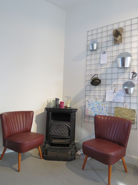 Having a tasty croissant with homemade jam and a good cup of coffee for Breakfast on a Sunday morning is a dream. You can take a seat at the large table and grab a newspaper or magazine. The vintage corner gives the somewhat simple interior a wow-factor. The lamp, made by the owners fifteen year old next door neighbor, is a sweet element in the room — as is as the vintage lunch boxes and water jugs on shelves in the shop.