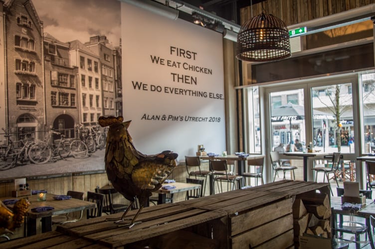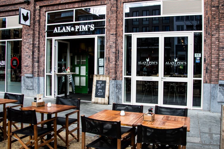 As soon as you arrive at the Brusselplein you walk towards the smell of roasted chicken. Yum! And who doesn’t like roasted chicken? Alan & Pim’s is a known one-disco restaurant from Amsterdam. And know they have opened doors in Utrecht Leidsche Rijn. Chicken at Alan & Pim’s is spiced three different ways: natural, Provençals, BBG and Chimichurri. You can eat chicken seven days of the week if you want. Doors open at 11:00 until 21:30.