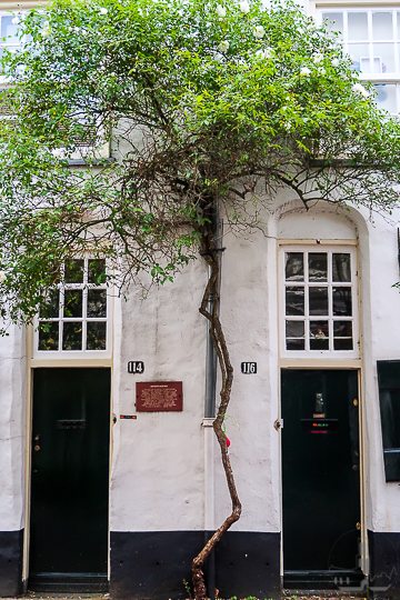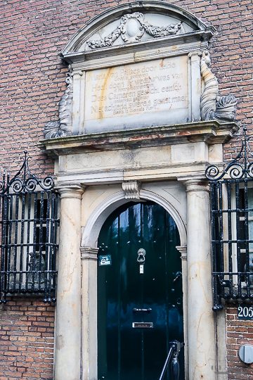 Located in the corner are Beijers Chambers, founded by Adriaen Beijer. Personally, I find this one of the most beautiful place in the city, in the shadow of the Dom tower, right next to the St Agnes convent. These houses remain free housing, accomodated by elderlies who still don’t pay rent. They are a mixed company of both Catholic and Protestant followers. These houses have gone through quite significant renovation. This can be seen on the boughs above the window – it is used to be 25 cm smaller, but were then ‘modernized’ in 1700.