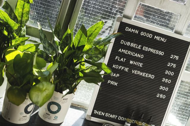 Upstairs in that same awesome building, coffee drips from the machine and cool stuff made by Damn Good Soap, at the Westerkade is for sale.