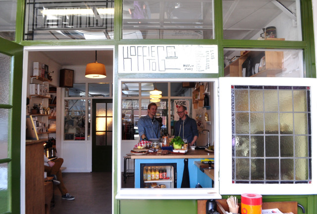 The men behind ‘Koffie Leute’ parked their mobile coffee bar for a while, which they travel with from festival to festival, to work on their Brauhaus on the Westerkade. The Brauhaus is part of a hub of creative people called DRUK. After months of hard work ‘Brauhaus’ opened its doors in February for all coffee lovers in Utrecht and surroundings. Brauhaus is a hit from the beginning. Coffee-lovers have been dropping by, by the busload for slow coffee at the Westerkade.