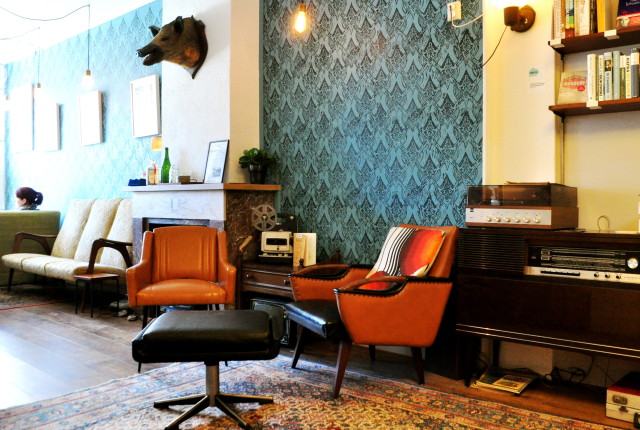 The kitchen slash living room concept of the Brauhaus is a success. While visitors take a seat in the beautifully decorated living room, the guys start working on their order. The living room has a hip and homey feel. The bright blue wallpaper, opposite the wooden brown floor and colorful rugs gives it a fresh look. The bookcase is well stocked and the games are provided for all visitors. You can also work at the Brauhaus, the coffee is plentiful. You can even play a game on the vintage Nintendo.