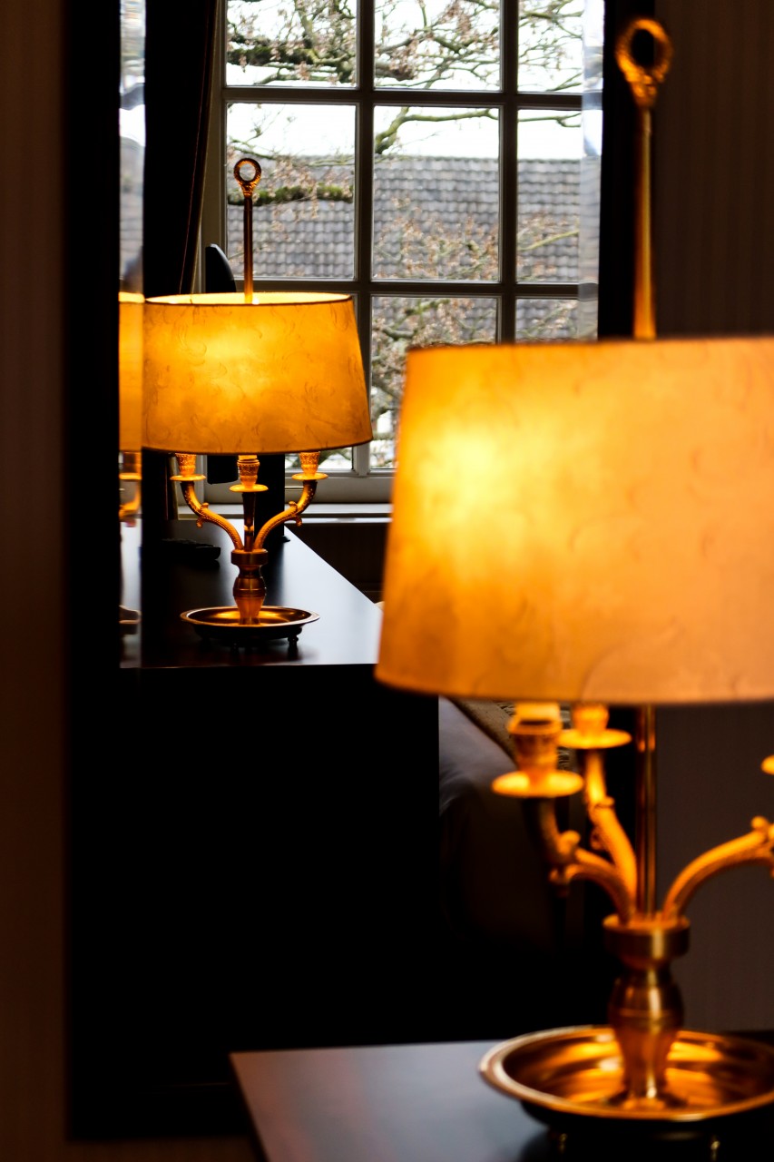 We waren ontzettend onder de indruk van het donkere houten bed, het zithoekje met groene fluwelen bank en het enorme bad in de badkamer. We bedachten meteen dat we in deze mooie zithoek de volgende ochtend heerlijk gingen ontbijten. Dit maak je niet elke week mee en dus wilden we genieten van elke minuut op deze prachtige kamer, met ook nog eens een prachtig uitzicht op de mooie tuin met de Domtoren in de verte op de achtergrond.