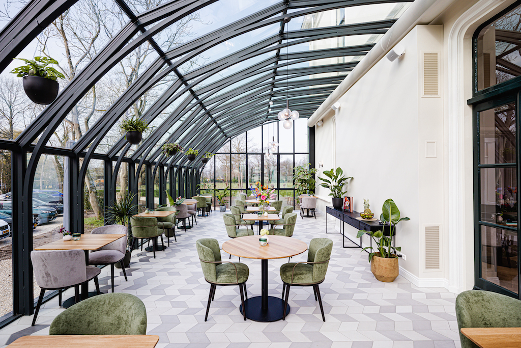 Ik word langzaam wakker met de opkomende zon en fluitende vogels. Terwijl er op de deur wordt geklopt en het ontbijt op een standaard op me staat te wachten, schenk ik nog een kop koffie in. Overnachten aan De Vecht, omringd door natuur is voor city gril best bijzonder. Ontbijten kan ook in restaurant Bloei dat de uitstraling heeft van een kas. Ook een throwback naar het verleden.