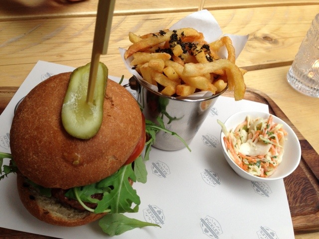 Fa. Pickles is een hamburger bar slash wijnbar. Een geweldige combo voor een hamburger en wijnliefhebber zoals ik! Geen gewone hamburgers bij Pickles: hier gaat het om de luxe hamburgers. Naast een gewone hamburger kun je een eend burger of een Wagyu, truffel hamburger bestellen. Ben je geen vlees liefhebber, no worries snacks en salades staan ook op het menu. Het interieur bij Pickles is iets industrieel en minimalistisch. Het beeld van het varken op de muur doet me denken aan een slagerij. Bij Pickles kun je dineren of meenemen, afhankelijk van je stemming. Pickles is aan een nieuw avontuur begonnen in Rotterdam en opende een restaurant in de Markthallen. Drieharingstraat 1-3 and at the Markthal in Rotterdam.