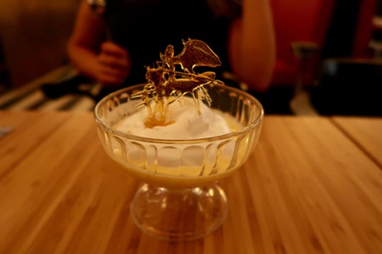 Mogen we dan nu nog een dessert? De île flottante die ik uitkies, is een schot in de roos. Een luchtig, zoet eilandje in een zee van vanille. Maar mijn tafelgenote lijkt haar crêpes ook niet verkeerd te vinden. Klassiek Frans, klassiek goed. Om onze deserties te laten zakken lopen we nog een rondje door de zaal, spieken in de keuken en gluren we bij de taarten afdeling. Zullen we er nog een? Nee, laten we onze jassen gaan halen. Jij had toch de garderobetickets?