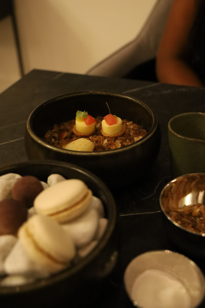 We begonnen de avond met een lekkere rosé-bubbel, want waarom ook niet. We kregen er eentje van Hollandse bodem. En die was, zoals sommelier Jan-Jaap Altenburg zelf al aankondigde, ‘erg lekker’. Jan-Jaap werkt sowieso graag met Nederlandse wijnen, dus gedurende de avond zal je er nog meer tegenkomen. Als je het wijnarrangement neemt, tenminste. We gingen er helemaal voor en kozen voor het 5-gangen menu inclusief wijnen. Een aanrader want je bent toch echt een avondje uit bij Maeve. Maar mocht je toch liever à la carte willen eten dan kan dat ook.