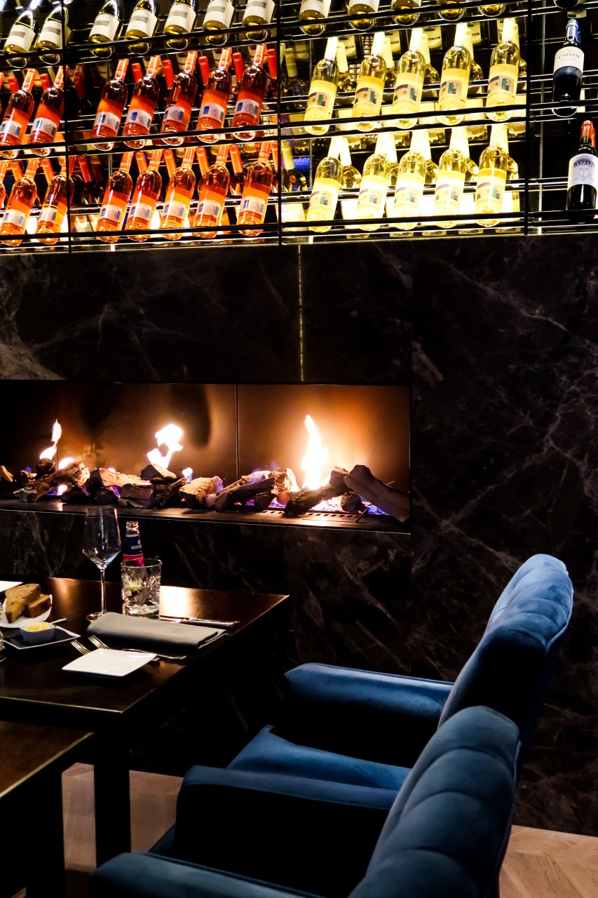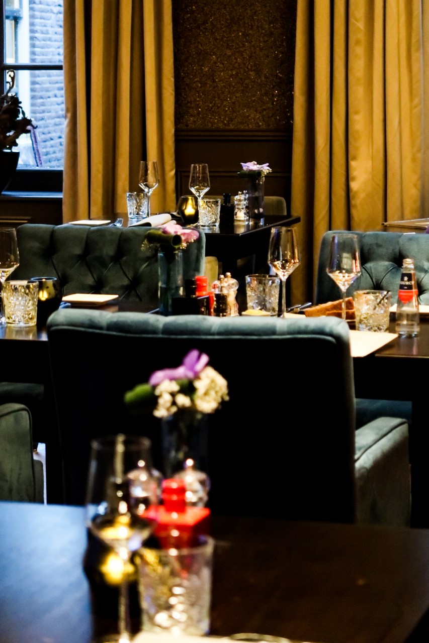 Na een wandeling van 10 minuten, kom ik aan bij De Heeren van Montfoort en word ik aangenaam verrast. Wat een prachtig restaurant met een luxe inrichting. Er is een heerlijke open haard waarboven mooie wijnflessen zijn tentoongesteld. Door de gastheer word ik hartelijk ontvangen en naar een tafeltje naast de open haard begeleid. Ik kan me niet herinneren wanneer ik voor het laatst naast een open haard heb gezeten. Het is fijn bijkomen van de koude wandeling.