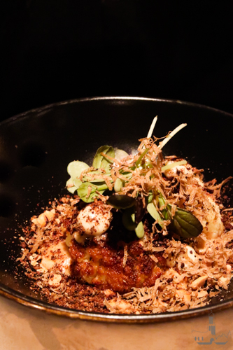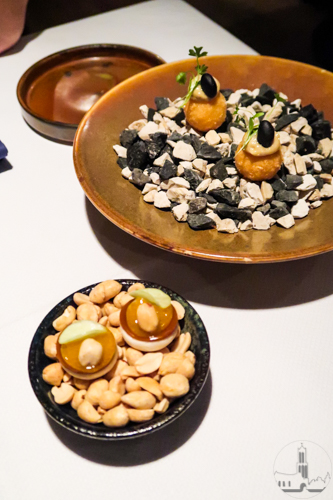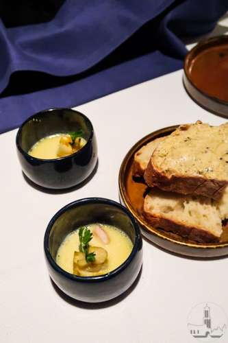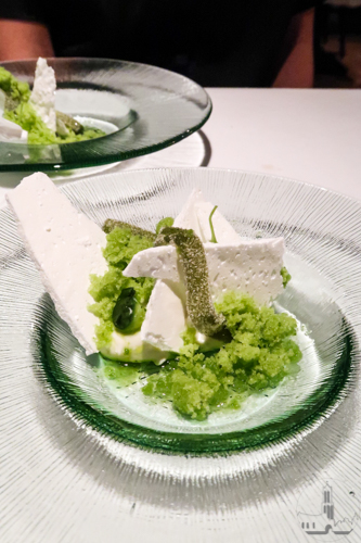 We nemen plaats aan tafel en vrij snel verschijnen twee amuses en lekker brood met porchini boter op tafel. Het brood wordt bij Fico in de ochtend zelf gebakken. Daarbij wordt een heerlijke spumante geschonken. Ooh, de Antilliaanse kaasbal smaakt precies zoals het hoort. Met een bite! Dan verschijnt nóg een amuse van: gebrande knolselderij, gerookte forel, macadamianoot, beurre blanc met tijm en zuurkool en verse munt. Echt comfort food!