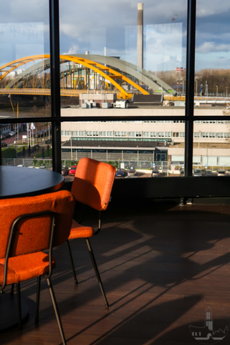 Daarna gingen we met de lift omhoog om de andere parel te bekijken: de Skybox! Met een prachtig uitzicht over Utrecht rondom lijkt ons dit de perfecte plek voor een borrel of feestje. Maak je het wat laat? Dan kun je altijd nog blijven hangen bij het bovengelegen ‘2L: The Blend’: een aparthotel gespecialiseerd in shortstay verblijf voor expats.