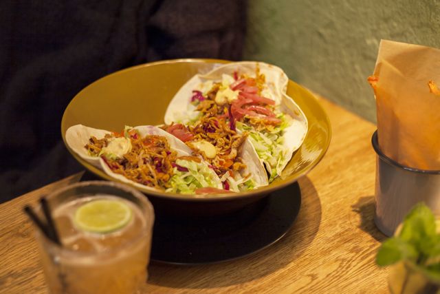 Op de kaart staan natuurlijk de Mexicaanse klassiekers. Weet je niet wat het verschil is tussen een tortilla, borrito en een enchilada? Dat legt de crew bij Popocatepetl je graag uit aan de hand van de menukaart. Om te beginnen bestelden we viskoekjes en calamaris. Ik verwachtte pittige koekjes met veel vis, maar helaas was het mij iets te zoetig. Jammer! Ook van de calamaris hadden we iets meer verwacht. Op de menukaart vind je naast kleine gerechten om te delen, ook hoofdgerechten voor de grote trek. Ik kan jullie de kleine soft taco’s met pulled pork en de knapperige zoete aardappelfrietjes met limoen mayonaise aanraden. Mijn tafelgenoot vond zijn enchiladas lekker maar had ook een meer authentieke Mexicaanse flavour gewild. Kanttekening is dus dat de gerechten best wat pit mogen hebben. Dus spice it up Popo’s!