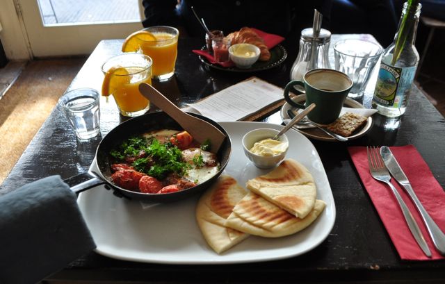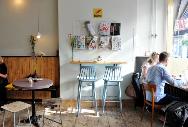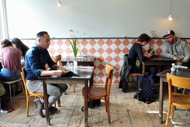 Dinsdag is het bakdag en dus staat het eetcafeetje dan bomvol hartige en zoete baksels. Mijn favoriet: cheesecake met extra caramelsaus. Maar de andere baksels kan ik jullie ook aanraden hoor. En bij Rabarber kan je de gehele dag ontbijten. Jaja!