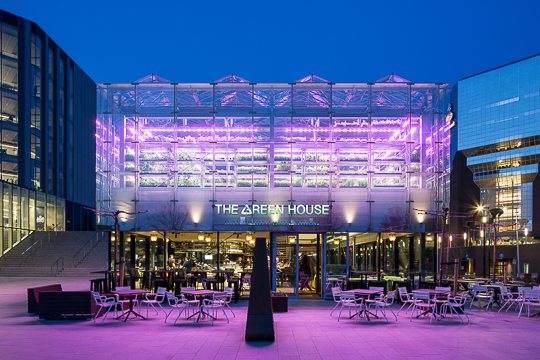 The Green House duidt niet alleen op de prachtige kas die bovenop het gebouw prijkt, maar slaat ook op hoe ‘groen’ ze zijn! Het is namelijk het eerste circulaire horeca paviljoen van Nederland. Wat dat inhoudt? Dat alles waarmee het pand gebouwd is, wat er in het pand staat en wat er in het pand aan eten en drinken gemaakt, wordt hergebruikt of is gemaakt van hergebruikt materiaal. The circle of life!