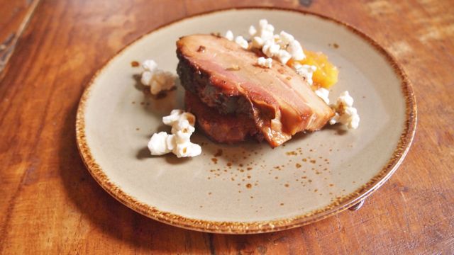 De tweede stop is restaurant Amerikana op de Catharijnesingel. Hier heb ik al eens gegeten en dat beviel toen erg goed. De mac ’n cheese met truffel en gepocheerd ei is briljant! Tijdens de wandeling krijgen we het andere succesnummer van de kaart: langzaam gegaard buikspek met mangochutney, een hashbrown en madame jeanette-popcorn. Gecombineerd met een rode Zinfandel uit de Napa Valley. Ik ben zó enthousiast over het verhaal bij de wijn en het gerecht en het mooie bordje, dat ik meteen aanval en prompt vergeet een foto te maken. Het is heerlijk! Ook heel goed hier: de menukaart op tafel. Zo maak je mensen nieuwsgierig naar de rest van het menu en verleid je ze om nog eens langs te komen. Een echte aanrader!