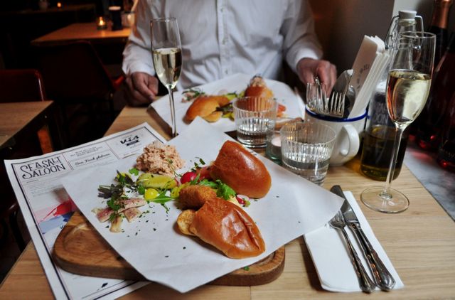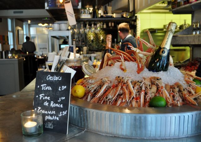 Onze favoriet is de mix van hapjes, geserveerd op een plank. Alle gerechten zijn gebalanceerd qua smaak en gekruid tot in perfectie. We wasten de crab salade, gerookte zalm op brioche, de garnalenkroketten en de paling weg met een heerlijk glas sprankelende Cava wijn. Het restaurant biedt ook standaard oesters aan uit verschillende regio’s. Ik heb de Ierse en Nederlandse oesters geprobeerd en werd niet teleurgesteld. Er staan slechts twee dessert opties op de menukaart – chocolade mousse en kardamom crème, maar geloof mij, ze waren beiden even heerlijk.