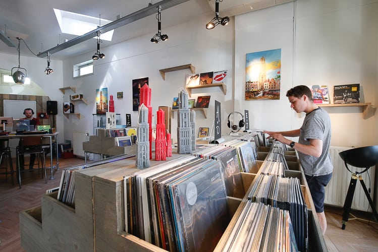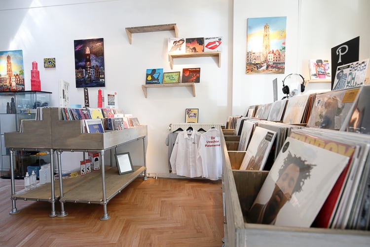 Op de beperkte ruimte die ze hebben staat een groot aantal bakken met platen. In die bakken staan ook minder bekende artiesten. Er is zelfs een speciale bak voor artiesten uit Utrecht. En op de toonbank staan platenspelers en versterkers. Het is net als vroeger. Alleen iets kleiner.