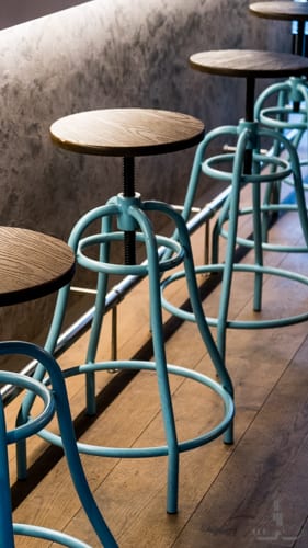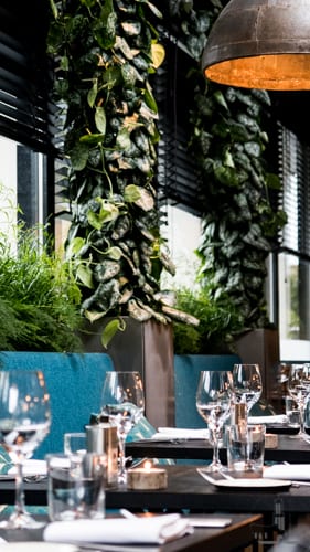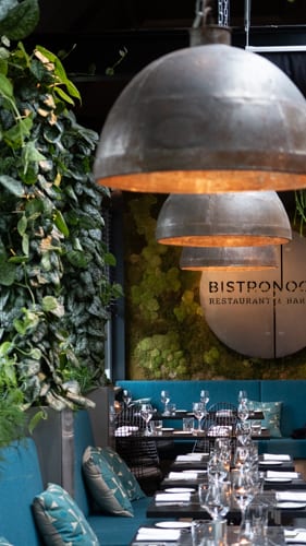 Bij Bistronoom hangt een ontspannen sfeer. De inrichting van het restaurant is warm met mooie blauwe banken en een urban jungle aan de muur. Na een snelle blik op de menukaart valt het ons meteen op dat de smaken combinaties bijzonder zijn. We besluiten ons te laten verrassen en geven de menukaart weer terug aan de serveerster.
